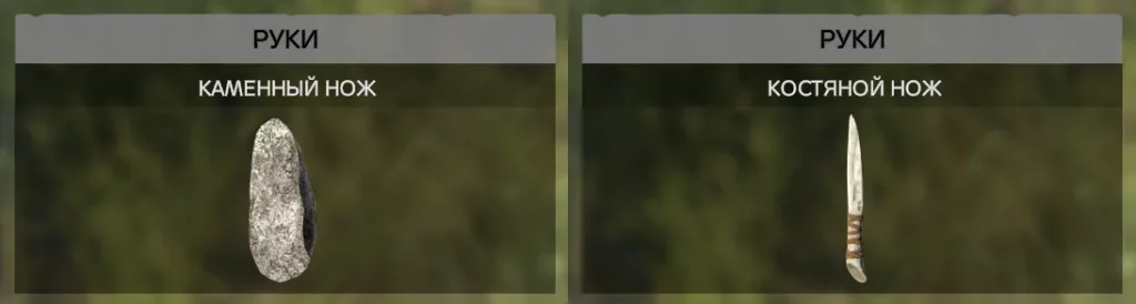 В игре можно сделать два вида самодельных ножей, это каменный нож и костяной нож