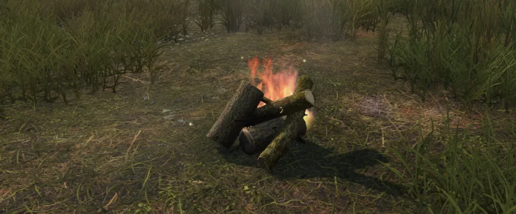 Вы сделали его, чтобы развести костёр, возьмите в руки набор для разведения костра и направьте “Прицел” на костёр, у Вас появится надпись “Разжечь”, зажмите ЛКМ и дождитесь пока персонаж разожжёт костёр.